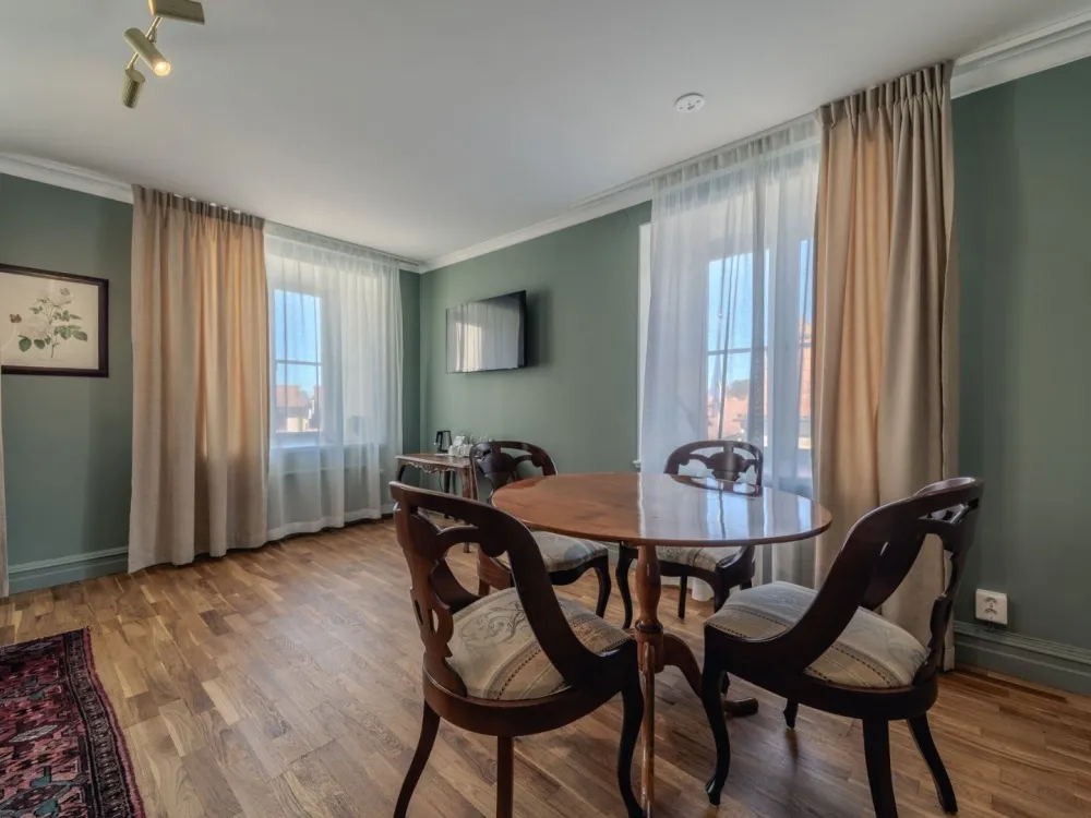 With a spacious lounge area and two separate bedrooms, our four family rooms have space for the whole family or for a larger group. All rooms have their own style with timeless decor that creates a relaxed atmosphere. In the lounge area you find a comfortable sofa group that invites to socialize. Some of the rooms have a stunning view of Visby.