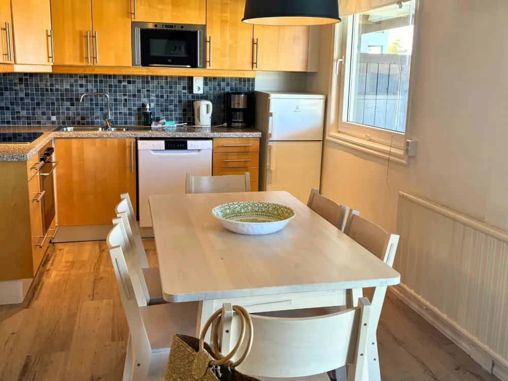 Zwei Schlafzimmer mit 6 Betten, eines der Zimmer hat ein Doppelbett (160 cm) und das andere hat zwei Hochbetten. Ein Wohnzimmer hat Essens, Möbeln, Sofa, Tisch und Fernseher. eine komplett ausgerüstete Küche mit Geschirrspüler und Kaffeemaschine, Wasserkocher, Ofen, Herd, Mikrowelle und Küchenausrüstung. Badezimmer mit Dusche und WC. Die Wohnung hat eine Terrasse oder Balkon mit Terrassenmöbeln mit Aussicht vom Meer. Es gibt Wlan und AC. Sie nehmen selbst Handtücher und Bettlaken mit. Haustiere und Rauchen ist nicht erlaubt.