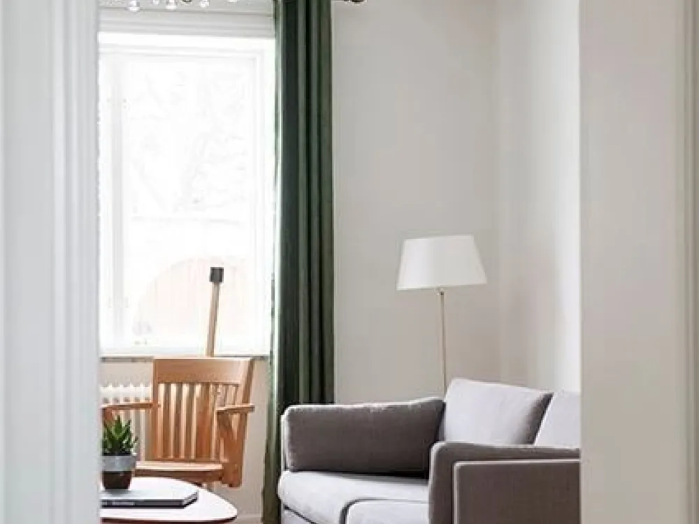 Lägenheten Herr Nilsson ligger på plan 1, här finns plats för 4 personer i 3 rum och kök fördelat på 75 kvm. Det finns 2 sovrum med vardera 2 sängar i 90 cm bredd som är sammansatta till dubbelsäng, men kan även ställas isär och placeras ut i rummet som enkelsängar. Herr Nilsson har ett allrum med soffgrupp, fåtöljer, TV och ljudanläggning. Köket är rymmligt och välutrustat för självhushåll, där finns diskmaskin, micro, kaffebryggare mm. Lägenheten ligger på entréplan (ej gatuplan) med god tillgänglighet och dessutom närhet till den trevliga bakgården med gasolgrill och utemöbler.