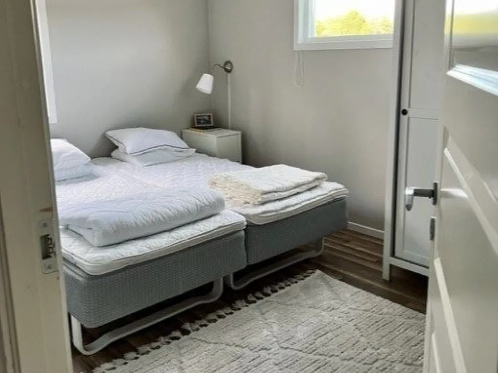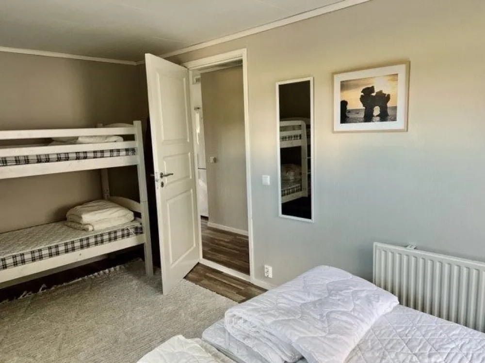 Parhus på 45kvm med två sovrum och ett badrum med dusch/WC. Stora sovrummet har en dubbelsäng (2 enkelsängar) och en våningssäng. Det andra sovrummet har en familjevåningssäng där underslafen är 120cm. I vardagsrummet finns en bäddsoffa för 2 personer, köksdel med spis, ugn, diskmaskin, micro och kyl/frys. Till huset ingår en egen möblerad terrass.Huset är privatägt och förmedlas av Toftagården. Som gäst på Toftagården har ni tillgång till pool, restaurang och pub.Fritt Wifi.