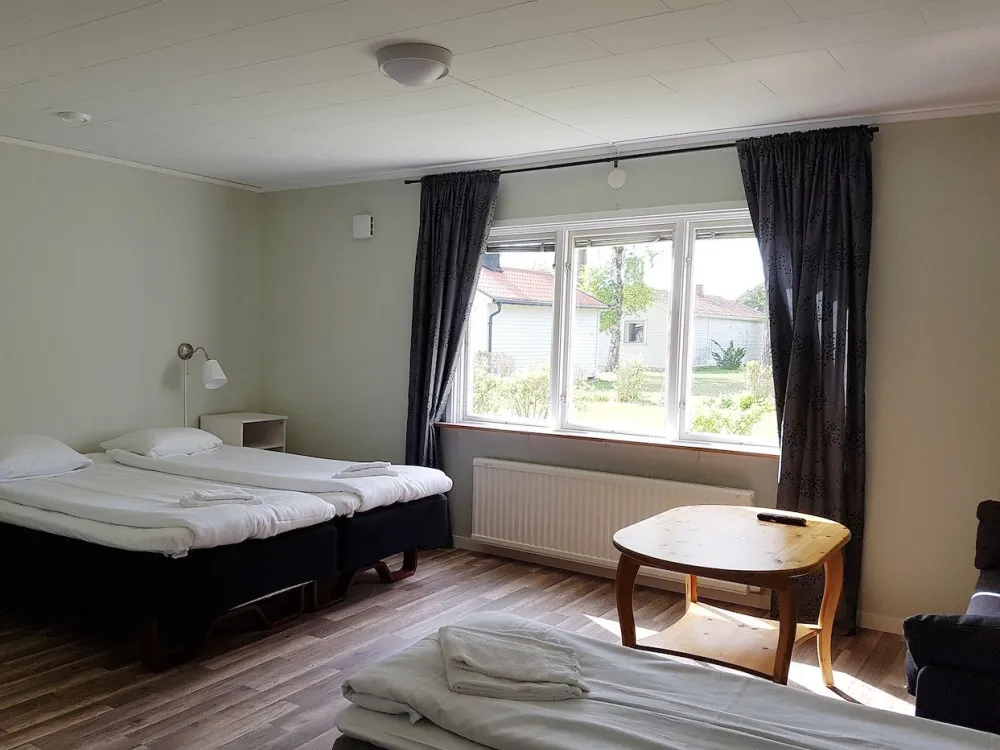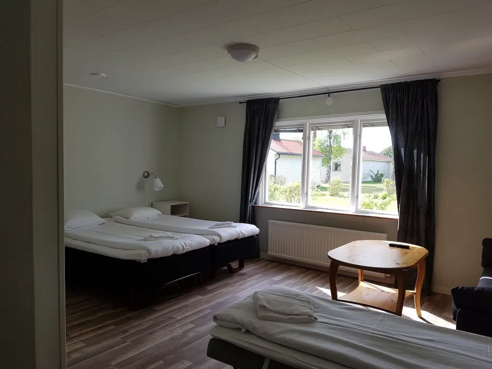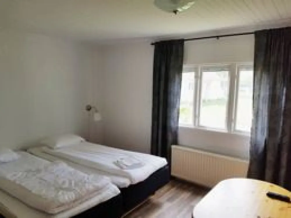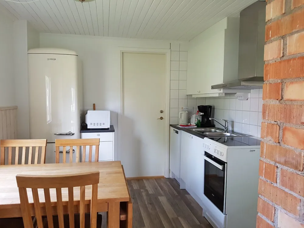 Rymligt parhus med 2 sovrum och två badrum med dusch/WC. Varje sovrum har 2 X 90cm sängar, extrabäddarna i bäddsoffa i det ena sovrummet. Köksdel med spis, fläkt, kyl/frys och diskmaskin. Egen möblerad uteplats. Huset är privatägt och förmedlas av Toftagården. Som gäst på Toftagården har ni tillgång till pool, restaurang och pub.Fritt Wifi.
