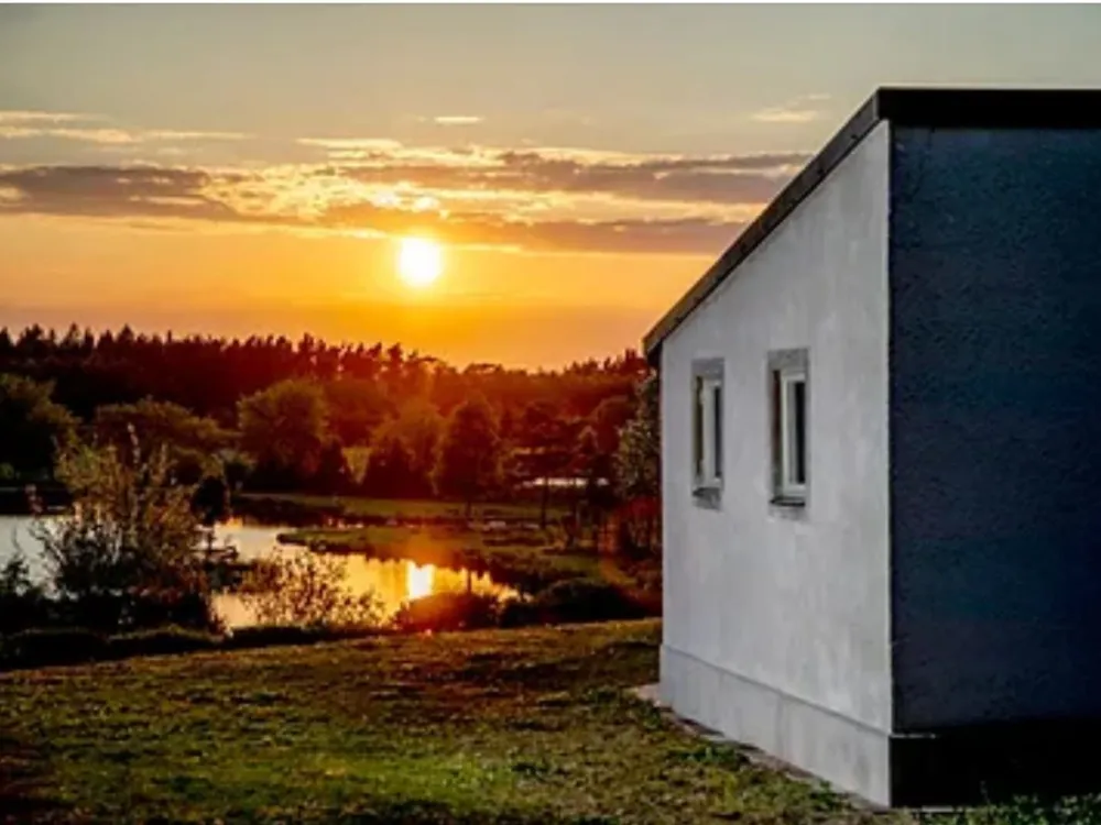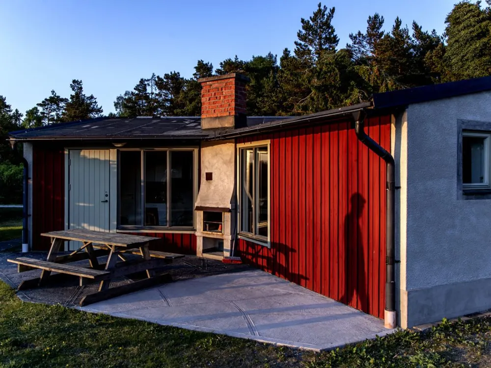 Stugorna är V-formade, vilket skapar ett insynsskyddat och ostört läge med egen uteplats, eldstad och grill.
