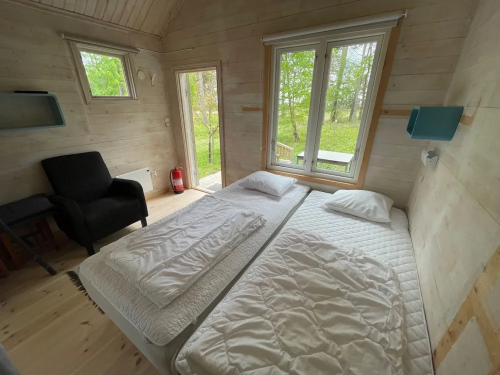 2 enkelsängar (90X200). Wi-Fi finns på området, signalstyrka varierar mellan stugorna.