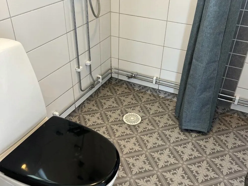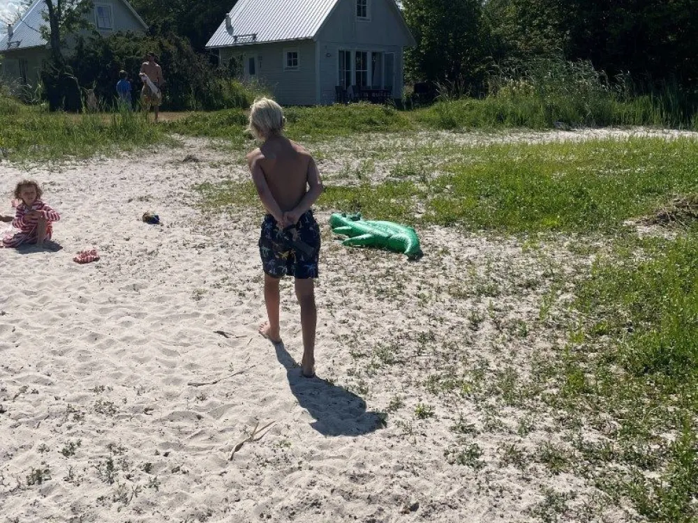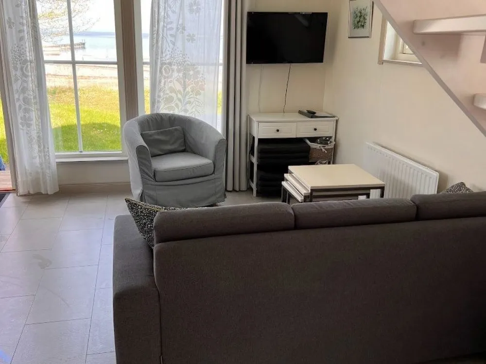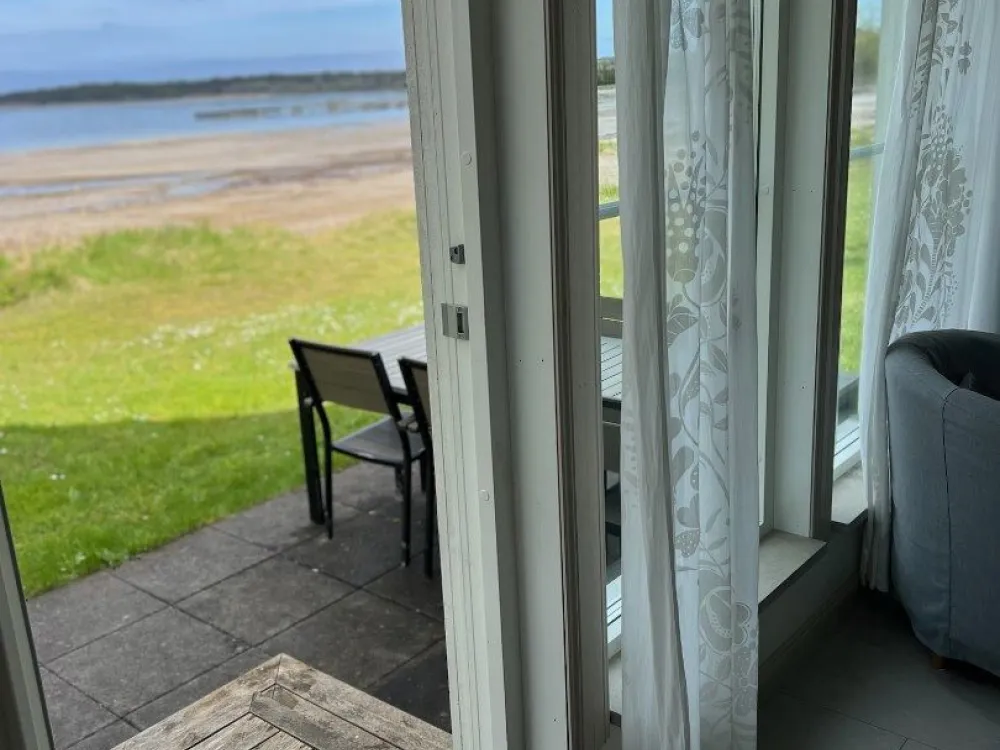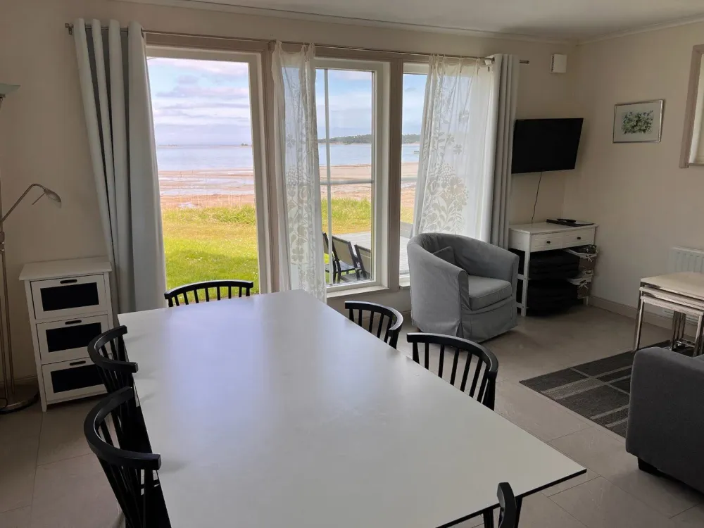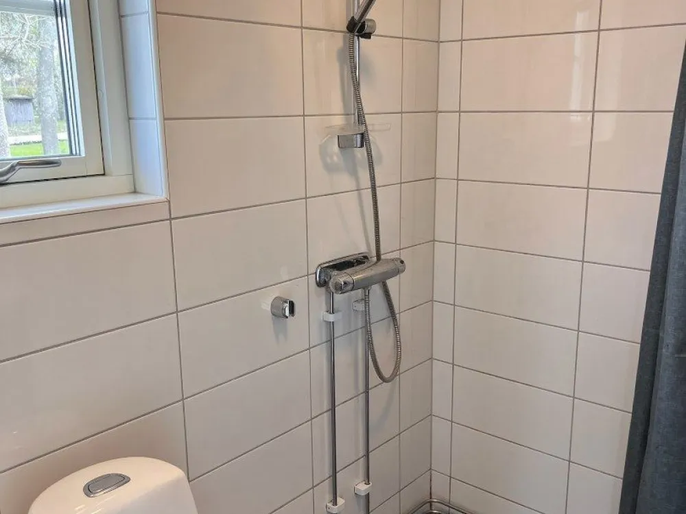 Master bedroom på nedre plan med dubbelsäng. Vardagsrum och kök i öppen planlösning med rymlig matplats och utgång till uteplats och trädgård. Kaklat badrum med dusch. På ovanvåningen finns två sovrum med två sängar i respektive rum. Egen uteplats med grillmöjligheter.